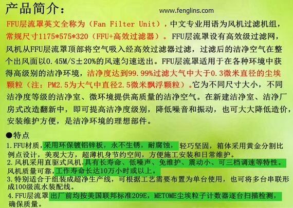1. 工業(yè)和商業(yè)生產(chǎn)中 有些對環(huán)境空氣潔凈度要求非常嚴(yán)苛 比如芯片工廠、制藥廠、手術(shù)室等等 他們使用的是另外一種空氣標(biāo)準(zhǔn) 遠(yuǎn)遠(yuǎn)比PM2.5之類標(biāo)準(zhǔn)嚴(yán)苛。FFU一般至少配置了H13級別的過濾網(wǎng),所以去除效率值得信賴。過濾板面積大、風(fēng)機功率強。CARD值可以達(dá)到1400,一臺頂普通的3臺。