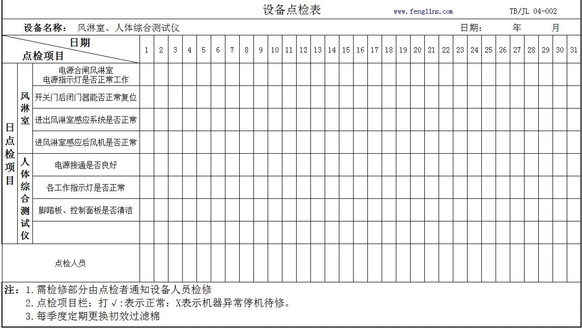 風(fēng)淋室設(shè)備點(diǎn)檢表參考
