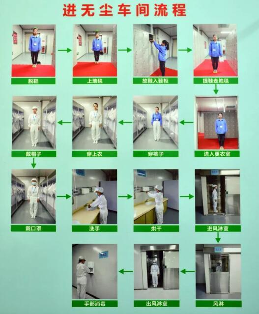 進(jìn)入無(wú)塵車間的整個(gè)流程就掛在更衣室的入口處