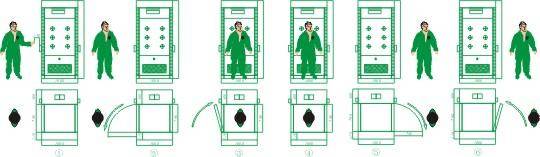 3.人進入風(fēng)淋室,進門自動關(guān)閉;